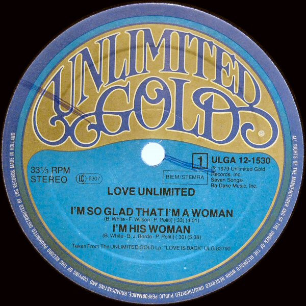 | A1 | Love Unlimited– | I'm So Glad That I'm A Woman | 4:01 |